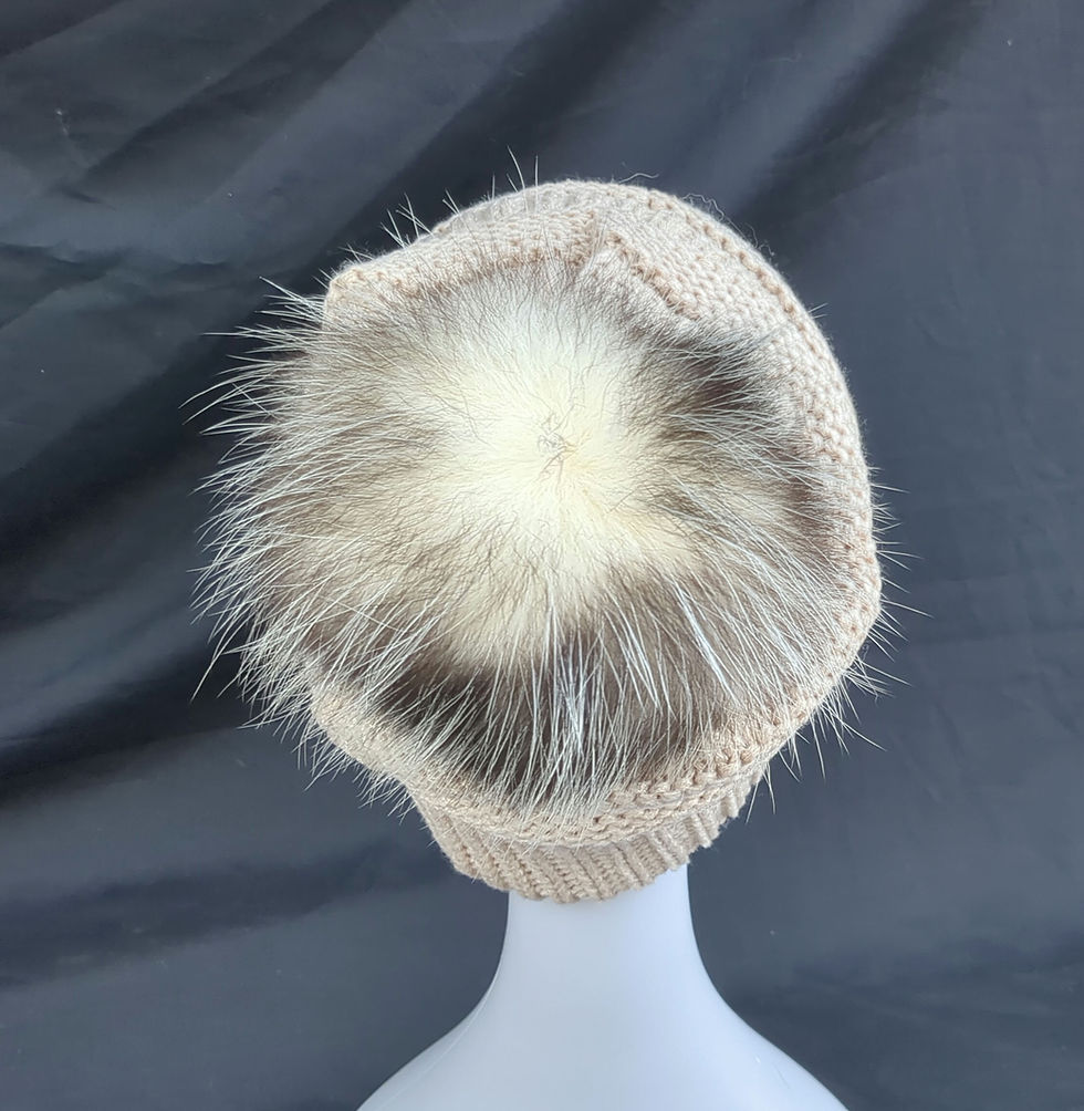 Beige, knit hat with beaver pompom